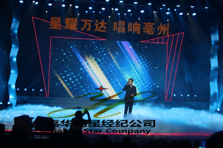4月13日,亳州萬達(dá)廣場投資有限公司通過我司嘉華明星經(jīng)紀(jì)公司邀請(qǐng)藝人黃格選出席“星耀萬達(dá) 唱響亳州”活動(dòng)?,F(xiàn)場黃格選現(xiàn)場《愛你和從前一樣》、《春水流》、《愛要說》等經(jīng)典歌曲。