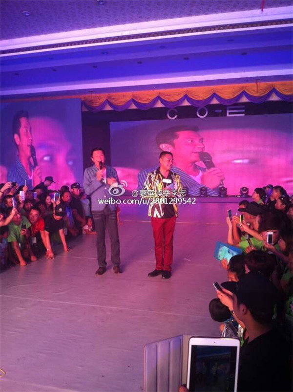 8月20日下午,嘉華明星經(jīng)紀(jì)公司攜邰正宵、關(guān)禮杰抵達鄭州黃河谷溫泉假日酒店,出席韓伊中原祈福大會暨超級明星盛典,現(xiàn)場,關(guān)禮杰帶來兩首歌的同時,邀請觀眾上臺一起跳恰恰舞?!缎囊屇懵犚姟肪従忢懫穑柟鈳洑獾嫩⒄⑹揭魳纷呱衔枧_,熱情的觀眾、優(yōu)美的歌聲,展現(xiàn)出一片溫馨的畫面。邰正宵又用《九百九十九朵玫瑰》、《一千零一夜》引動全場,完美的大合唱,一場聽覺、視覺盛宴在觀眾熱烈的掌聲中落下帷幕。后臺和嘉賓合影,本以為120位合影的場面會很亂,主辦方韓伊安排的非常好,井然有序,這期間,有一位董小姐是邰正宵的粉絲,拉著邰哥要簽名照,由于上場匆忙,簽名照忘在了酒店,邰哥讓經(jīng)紀(jì)人李志留下這位粉絲的聯(lián)系方式,合影結(jié)束后,回酒店取簽名照片和簽名專輯贈予她。嘉華明星經(jīng)紀(jì)公司做過很多藝人活動,像邰哥這樣的藝人,真的很少很少。
