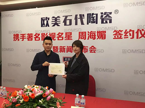 2016年3月16日,周海媚擔(dān)任歐美石代陶瓷品牌代言人簽約儀式。20世紀(jì)80、90年代,海媚的名字幾乎與港劇的全盛時(shí)期緊密聯(lián)系在一起的,《流氓大亨》、《義不容情》、《大鬧廣昌隆》、《今生無悔》幾乎每部都是當(dāng)年的收視冠軍劇,海媚更連續(xù)三年被評(píng)為“香港地區(qū)最受歡迎的女演員”;現(xiàn)在的周海媚,蕙質(zhì)蘭心,由內(nèi)而外散發(fā)出來的魅力。