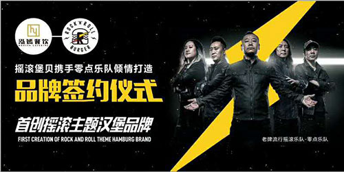6月15日,搖滾堡貝攜手零點(diǎn)樂隊(duì)品牌簽約儀式,首創(chuàng)搖滾主題漢堡品牌。